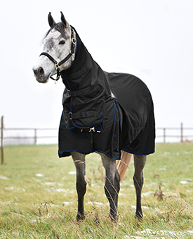 Elles ont toutes en commun une combi encolure avec des épaules bien formée et un surplis d'aisance relevé pour relâcher la pression exercée sur les épaules, et pour réduire les points de friction. La combi-encolure protège l'encolure de la neige et de la pluie et élimine les problèmes de l'eau qui passe sous la couverture. Le cheval sera complètement protégé de l'encolure jusqu'à la queue. La combi-encolure a un strap qui l'attache à la couverture ce qui lui permet de rester bien en place.